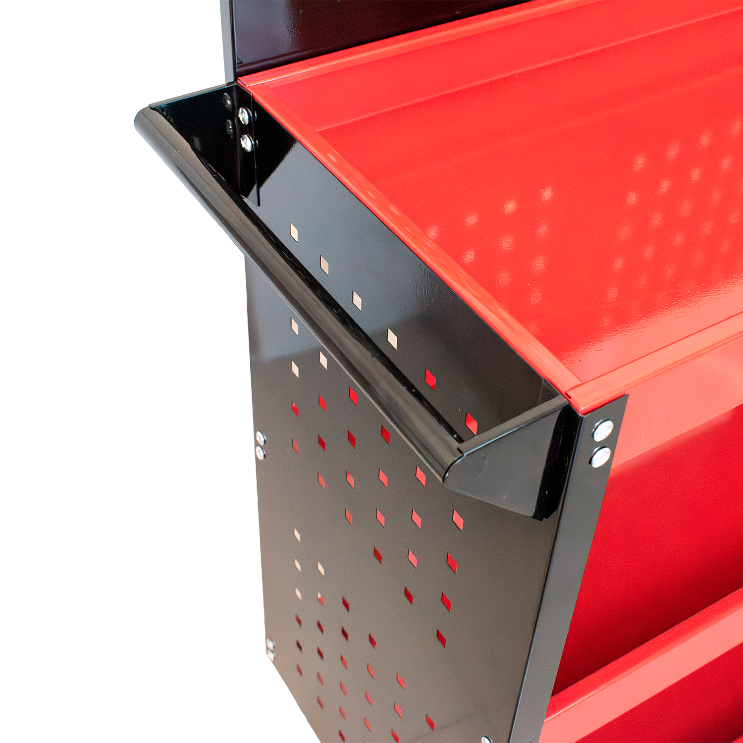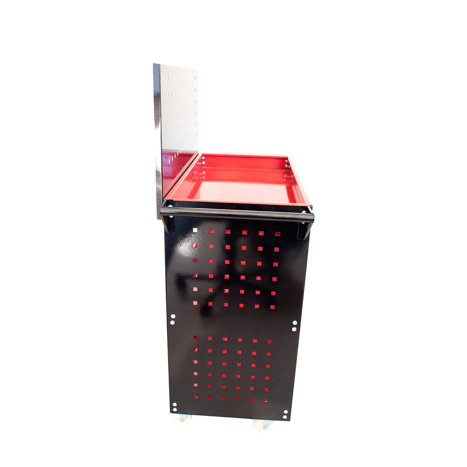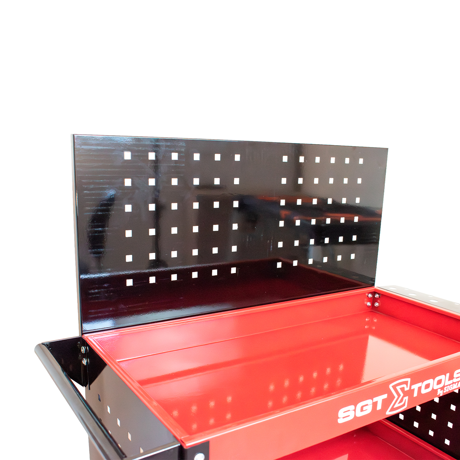 3 bandejas para organização de ferramentas; • Painéis laterais e traseiro para uso com ganchos; • Rodízios para fácil movimentação; • Alça para transporte; • Suporte para pinceis. Vantagens • Maior organização com uso combinado de bandejas e painéis; • Facilidade no acesso às ferramentas; • Mobilidade para uso em diferentes áreas da oficina; • Estrutura leve e resistente para uso profissional; • Acompanha 10 ganchos – 2001990001. Aplicação Ideal para organização e transporte de ferramentas em oficinas mecânicas, centros automotivos e ambientes de manutenção.