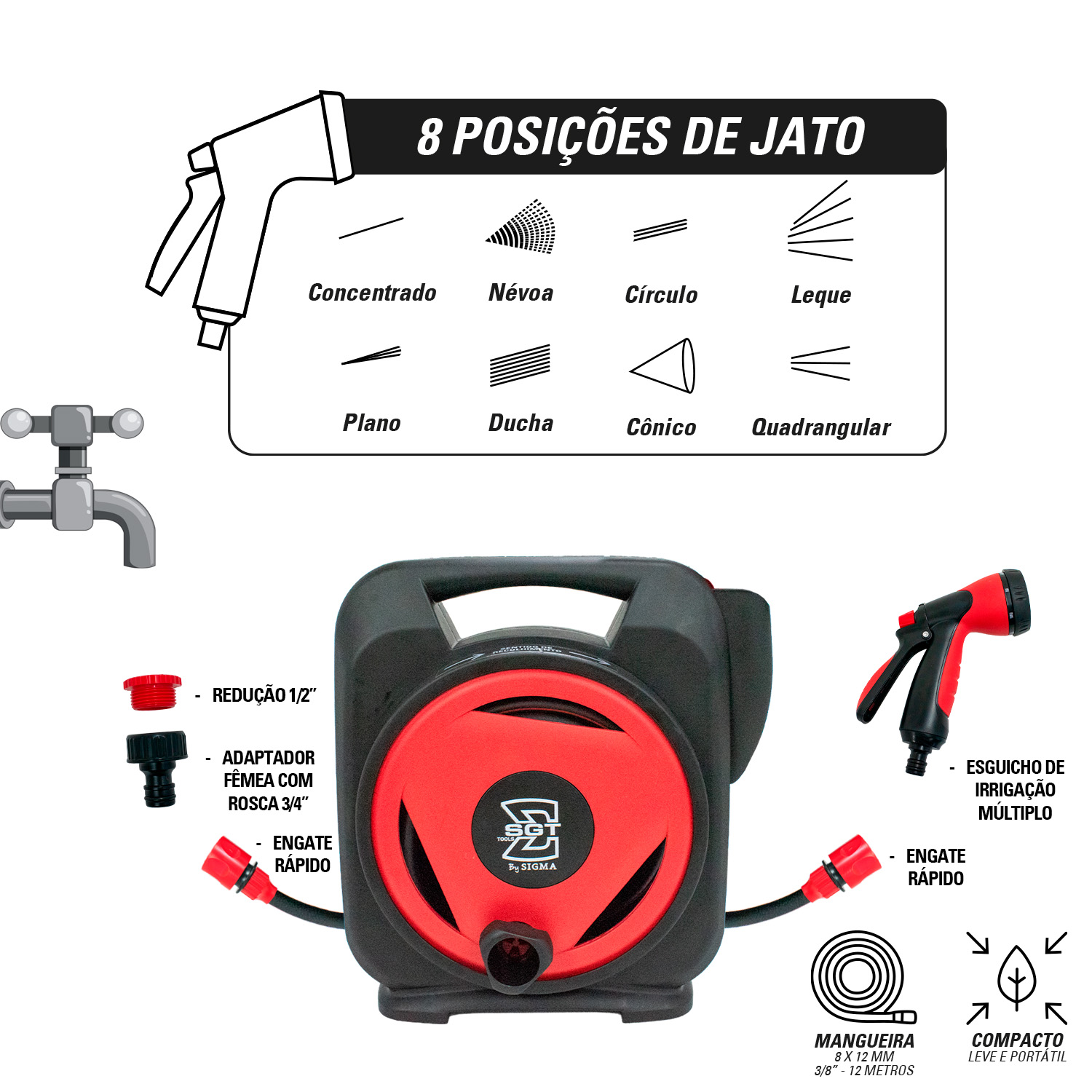 SGT-9950 – MANGUEIRA COM ENROLADOR E ESGUICHO 12 M
